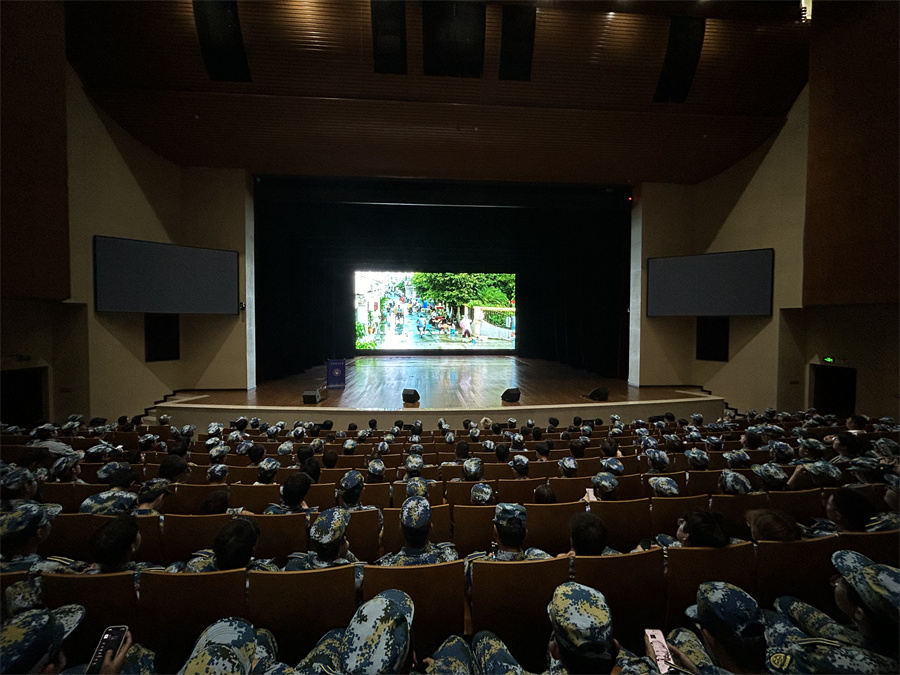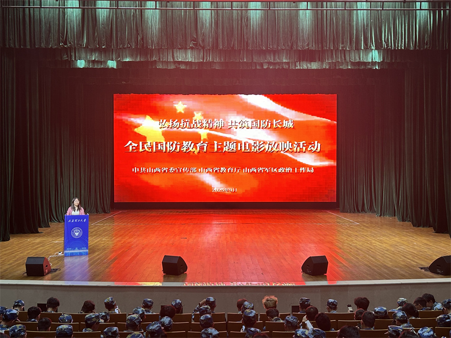 9月18日、19日晚,我校组织2025级新生分别在我校明向校区明向会堂、虎峪校区同泽会堂同步开展 全民国防教育主题电影放映活动,两校区共计1600 余名新生代表现场观影,在光影之中感悟国防意义、汲取奋进力量。